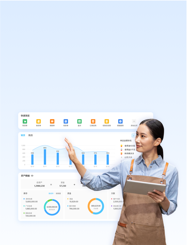 异地协同多点办公,财务业务智能集成快速开单高效流转,经营分析辅助决策